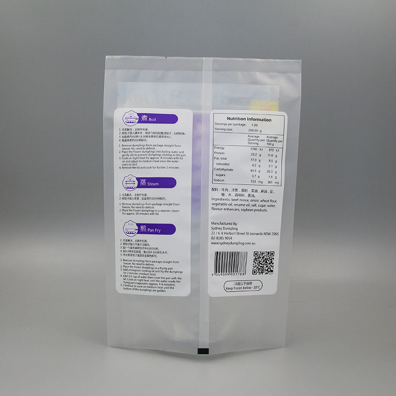 產(chǎn)品名稱:200g餃子洋蔥牛肉+啞光塑料復合冷凍+背封袋