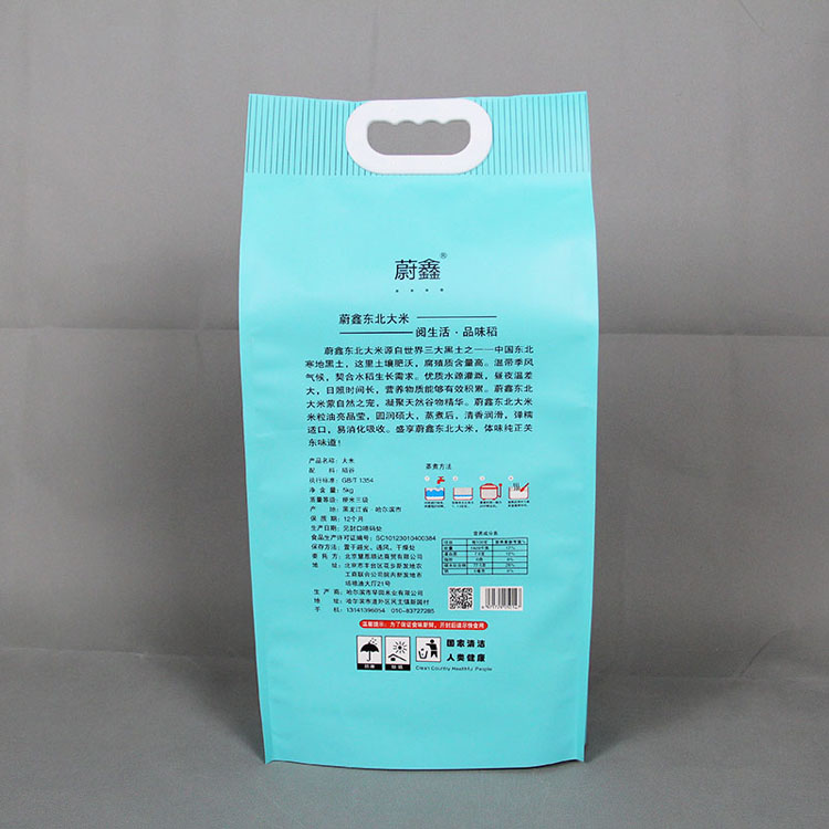 大米小米包裝袋有時(shí)候作為直接包裝,因此需要做成真空袋,又稱貼身防潮袋、鋁箔袋、鋁塑復(fù)合袋,其材質(zhì)一般為PET/AL/CPE或PET/NY/AL/CPE.其中PET——印刷效果好,NY——透氧性低,AL——阻隔性強(qiáng)、不透光,CPE——包裝內(nèi)層。膠水:水溶性膠水(更加衛(wèi)生、環(huán)保、無溶劑殘留量)此產(chǎn)品具有良好的防靜電、隔氧、屏蔽、防潮、遮光功能及優(yōu)良的熱封性。