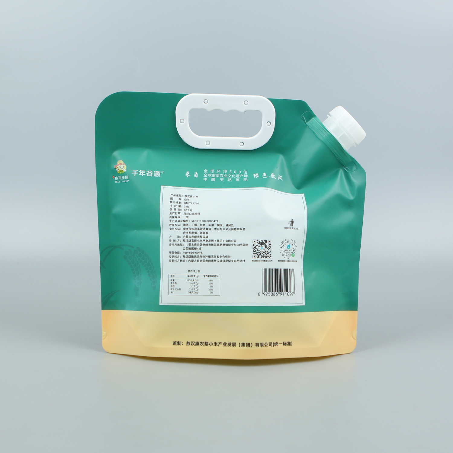 產(chǎn)品名稱(chēng):2kg黃小米袋+UV塑料復(fù)合+自立帶吸嘴