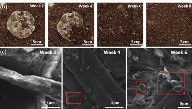 為了評估它們的細絲的生物降解性,該團隊后來將其放入堆肥土壤中,發(fā)現(xiàn)其葉基中的酶分解了“難以降解的物質(zhì)”,如角質(zhì)。有趣的是,這種材料不太穩(wěn)定的表面也提高了分解速度,因為它允許微生物與其接觸并加速這一過程,有助于實現(xiàn)“可完全降解的塑料”。