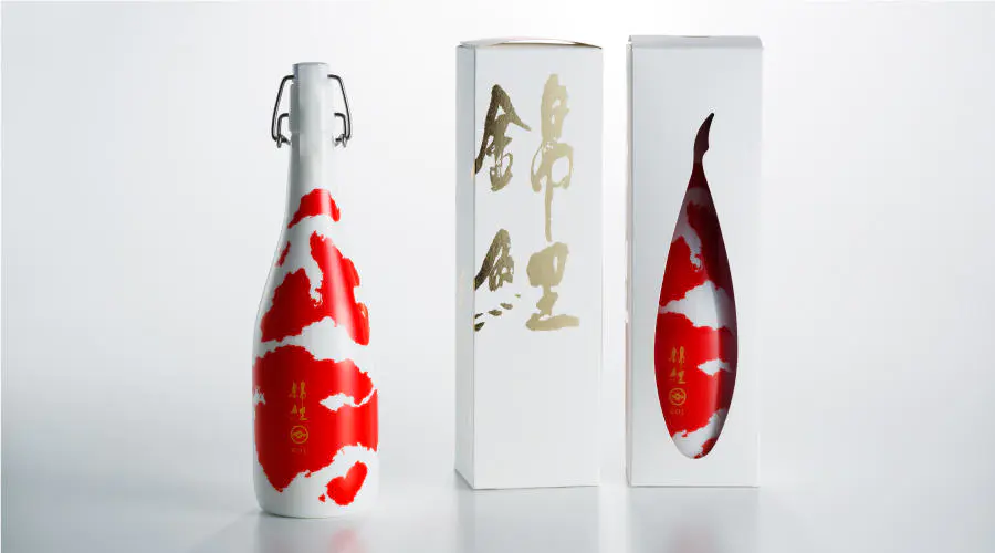 錦鯉作為日本的象征,將他用于包裝上是一個寓意非常好的創(chuàng)意,不單單是在日本,在中國錦鯉也有著很好的寓意;瓶身飄逸著錦鯉的紅白斑紋,配色讓人看著很舒服,瓶身圓潤酷似錦鯉身體;外包裝盒表面鏤空一錦鯉剪影,當(dāng)酒瓶放于盒內(nèi)能給人營造出一種錦鯉游水的趣味性。