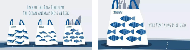 樂購為消費者設(shè)計了一款高顏值的環(huán)保袋,以三種瀕危海洋動物為元素,設(shè)計了海洋藍色系環(huán)保購物袋。其材料更加環(huán)保,比起我們使用的塑料袋也更結(jié)實耐用。喚醒大家關(guān)注海洋動物的同時,也讓大家用上了環(huán)保材料。