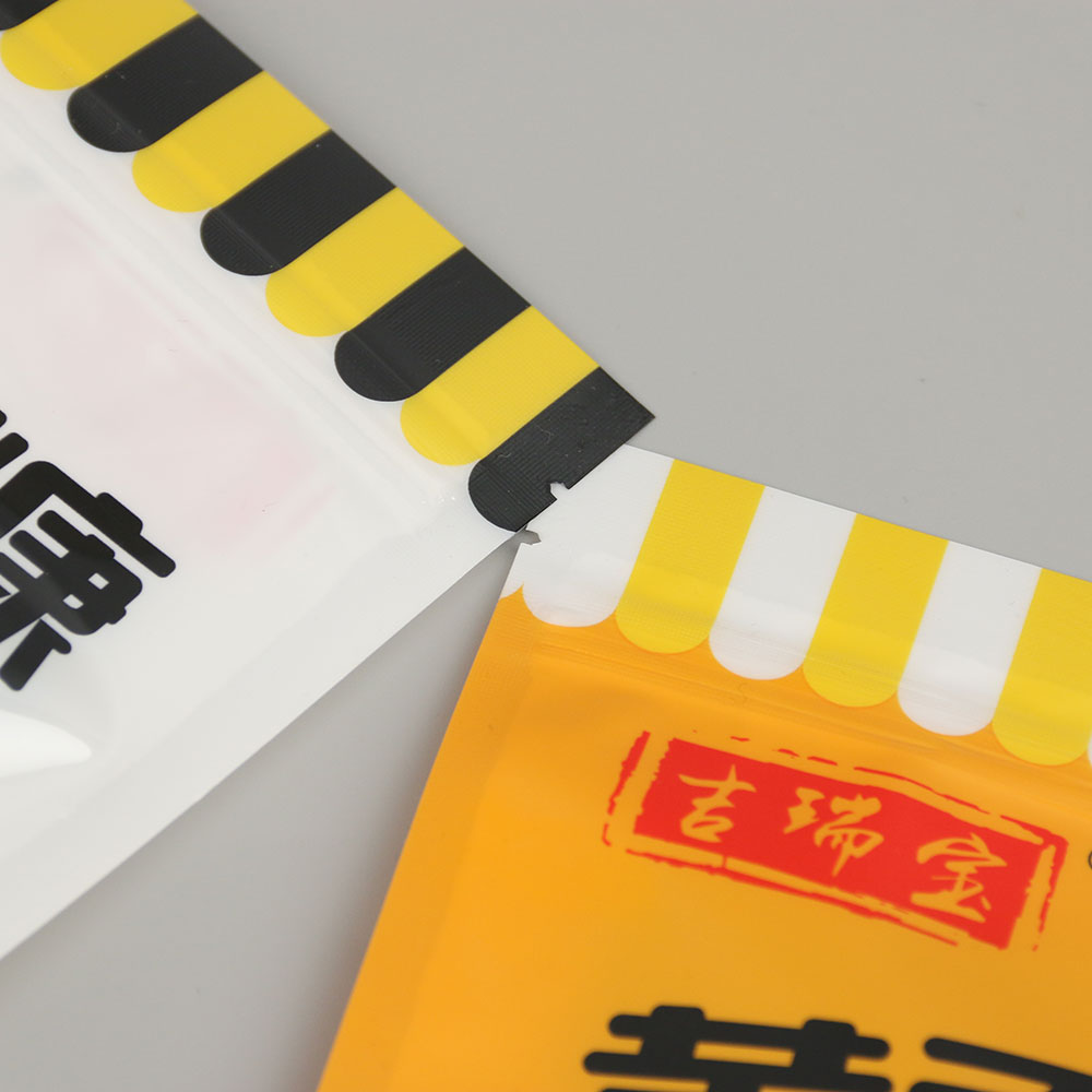 本產(chǎn)品為亮面塑料復(fù)合三邊封拉鏈袋,三邊封是最常見的袋型,具有良好的氣密性,保濕和密封性極佳,防止霉變能力強,外表美觀。巨人包裝擁有17條生產(chǎn)線,配備數(shù)臺現(xiàn)代化機械設(shè)備,成袋效果好,密封性強,精選食品級原材料,符合環(huán)保要求的油墨,提升袋子的安全性。