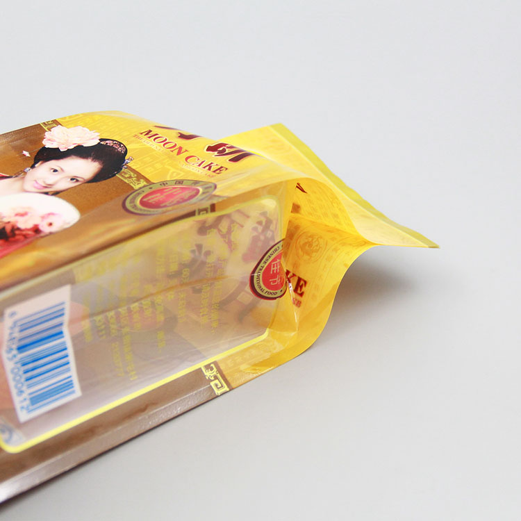 本產(chǎn)品為亮面塑料復(fù)合四邊封 包裝袋 ,塑料包裝保持月餅風(fēng)味與品質(zhì),防止月餅氧化變質(zhì)。四邊封每條邊都經(jīng)過均勻的熱封,成袋后的產(chǎn)品密封性較好。巨人包裝選擇環(huán)保油墨,復(fù)合