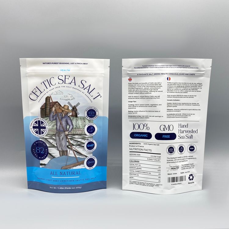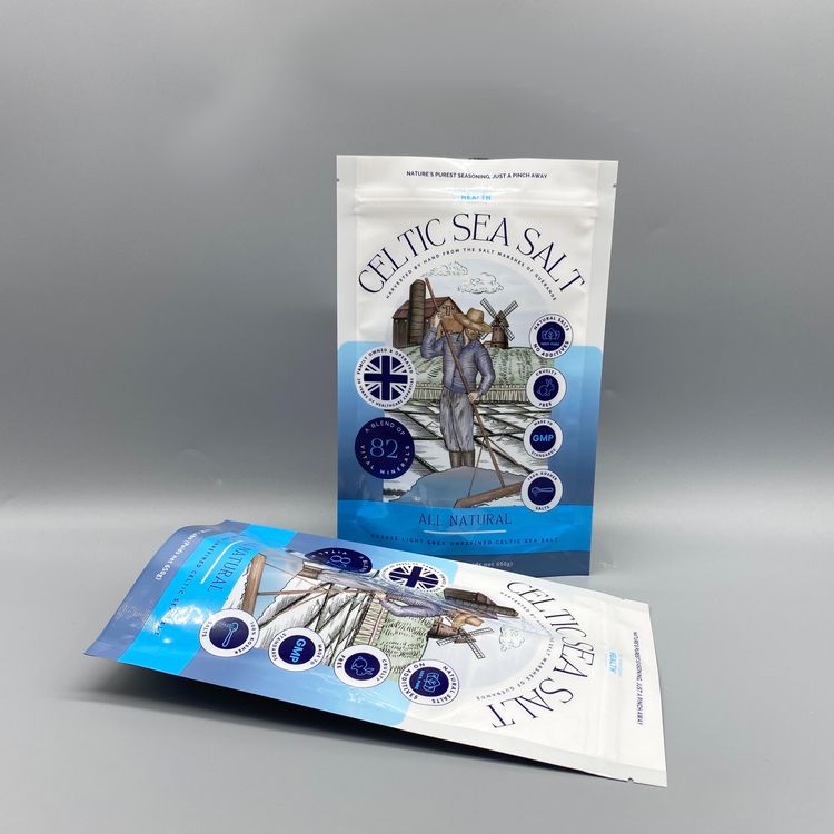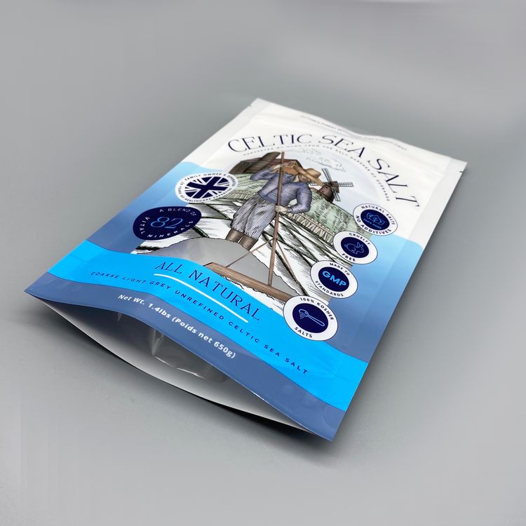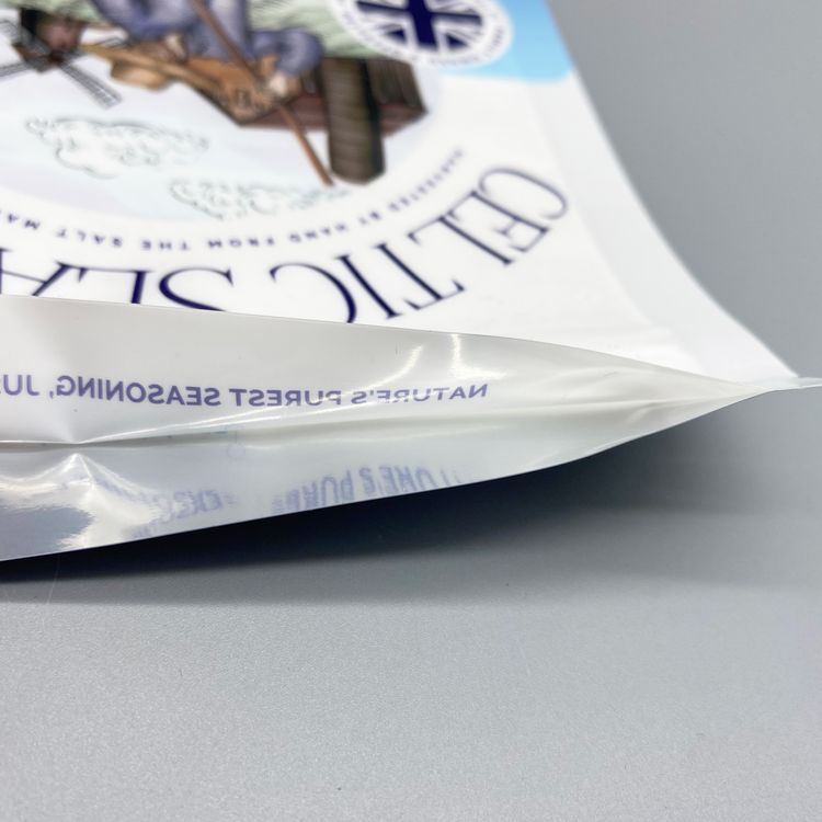 海鹽袋采用自立拉鏈袋設(shè)計,這種袋型能夠穩(wěn)固地站立