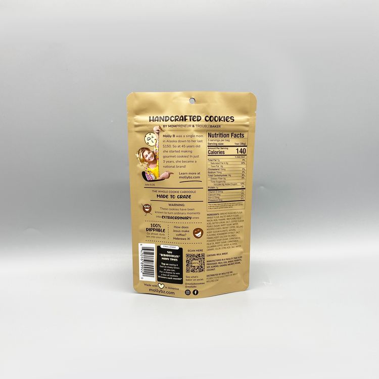 這種袋型以其獨特的自立能力,確保了餅干在貨架上的醒目展示