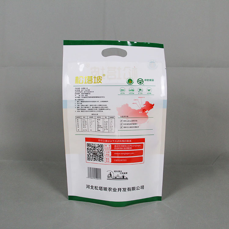 大米小米包裝袋有時候作為直接包裝,因此需要做成真空袋,又稱貼身防潮袋、鋁箔袋、鋁塑復合袋,其材質一般為PET/AL/CPE或PET/NY/AL/CPE.其中PET——印刷效果好,NY——透氧性低,AL——阻隔性強、不透光,CPE——包裝內層。膠水:水溶性膠水(更加衛(wèi)生、環(huán)保、無溶劑殘留量)此產品具有良好的防靜電、隔氧、屏蔽、防潮、遮光功能及優(yōu)良的熱封性。